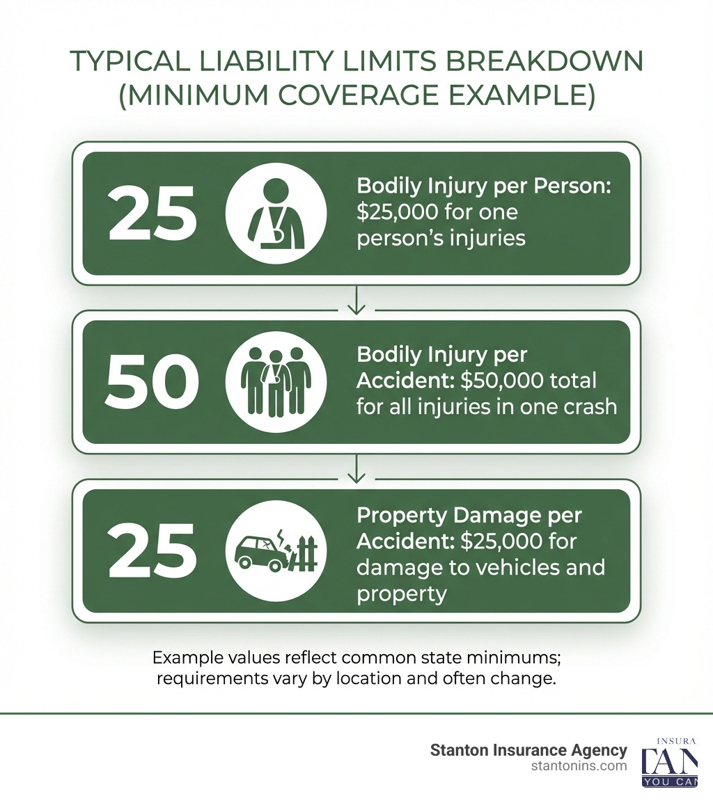 • Bodily Injury to Others ($25,000 per person / $50,000 per accident): This is your liability coverage that pays for injuries to other people if you cause an accident. The minimums mean your policy will pay up to $25,000 for one person’s injuries and a total of $50,000 for all injuries in a single accident. While these limits are mandatory, we often recommend higher amounts to truly protect your assets, as medical costs can easily exceed these figures.
